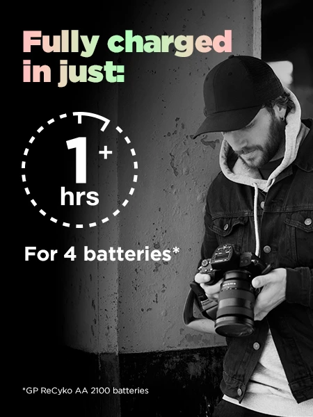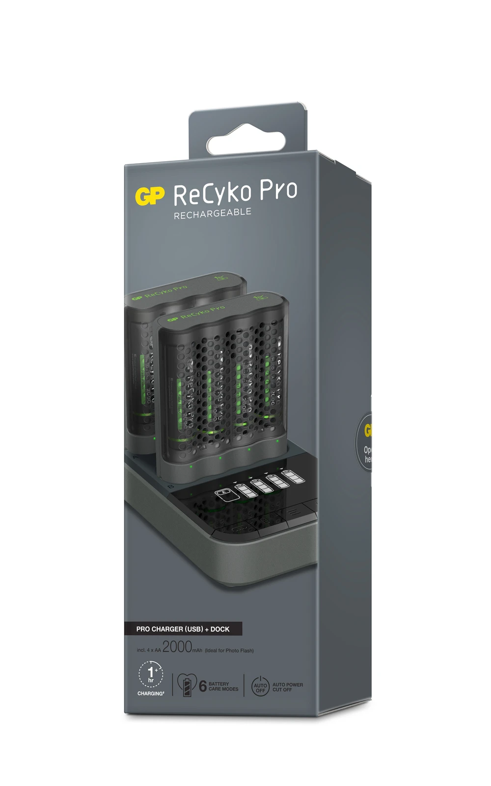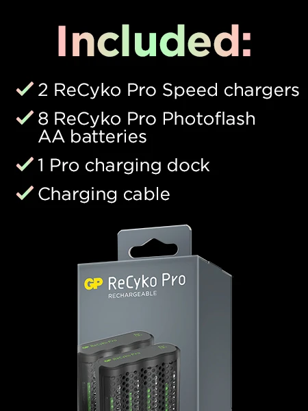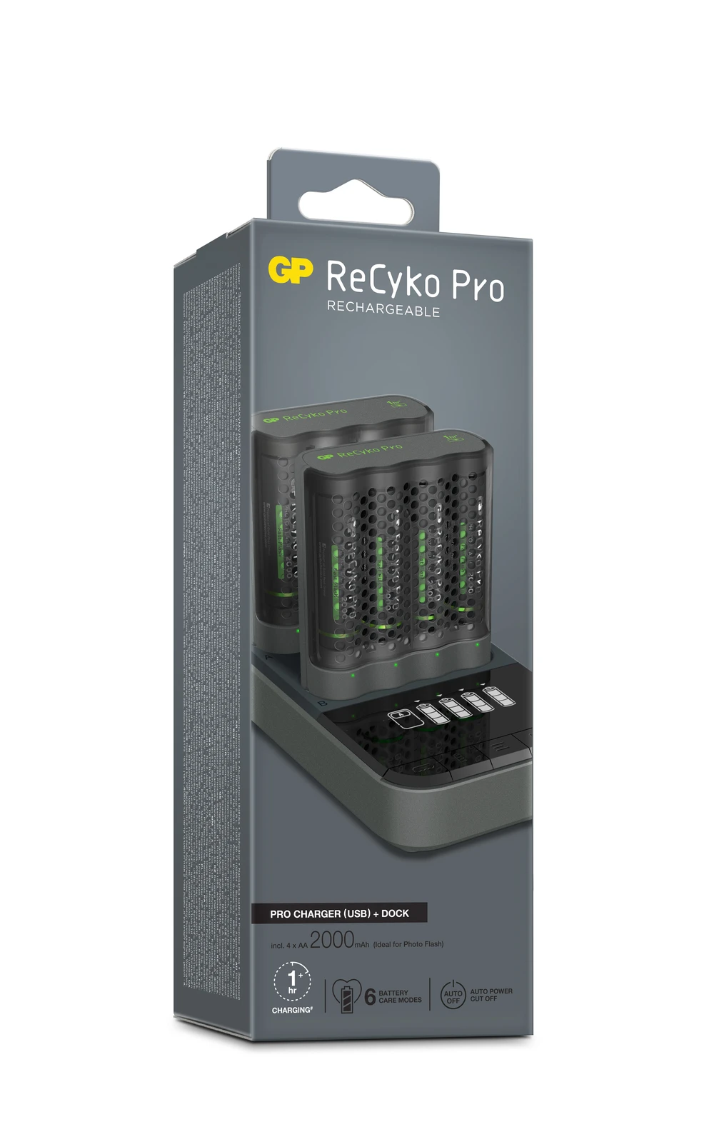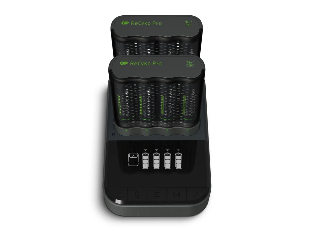 Au travail, à la maison ou en déplacement. Avec GP Pro Charger Dock vos piles sont toujours prêtes à être utilisées. Avec de la place pour huit piles, vous pouvez par exemple emmener avec vous quatre piles « à emporter » et laisser les autres au même endroit fiable où vous les aviez prises. La recharge des batteries doit être naturelle, Pro Charger Dock vous facilite les choses si vous utilisez les piles souvent et à plusieurs endroits différents. Cette station de charge est dotée d’une fonction Auto Power Cut Off, c’est-à-dire que vous pouvez la laisser branchée à la prise murale même après avoir ôté les piles ou lorsqu’elles sont complètement chargées. La station de charge est conçue pour fonctionner avec les chargeurs ReCyko FAST et FASTEST. À l’achat, huit piles rechargeables ReCyko Pro sont fournies.