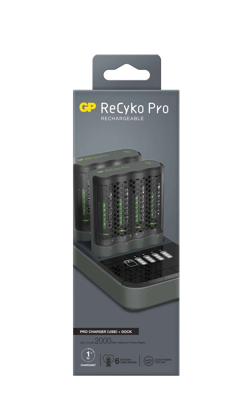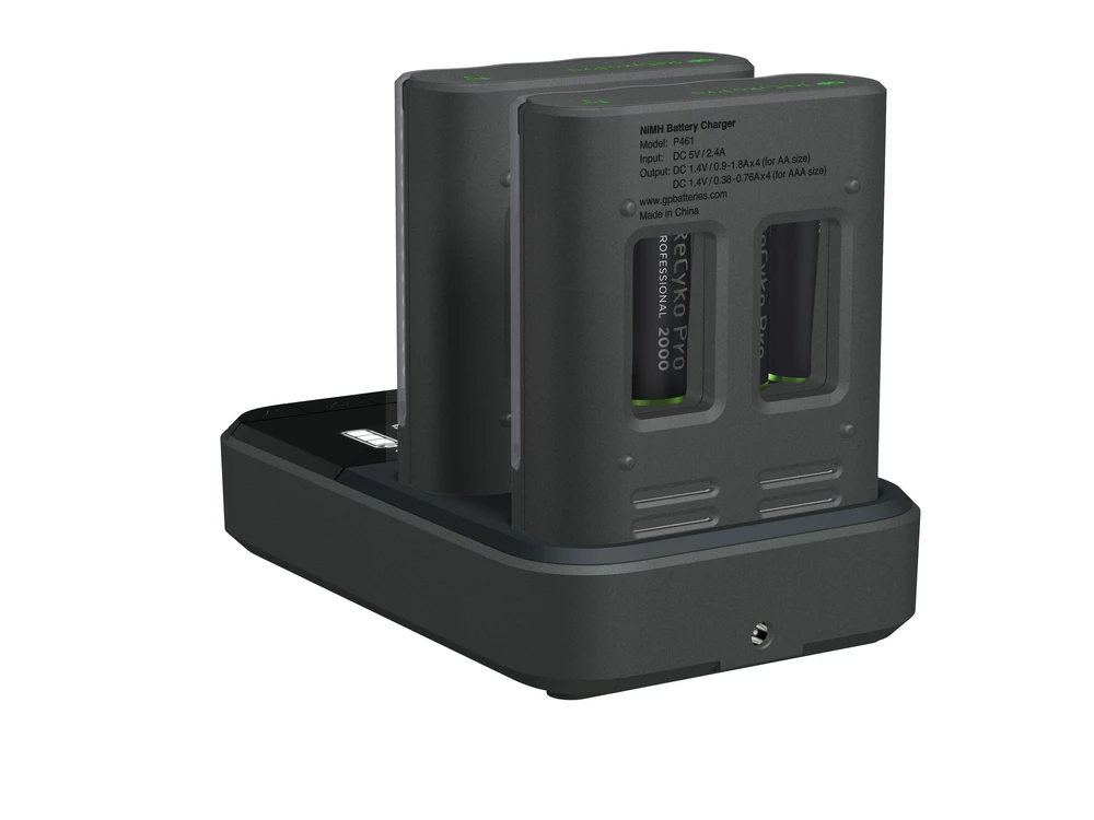 2 GP ReCyko Pro Charger M461 (USB) avec la station de charge D861, fourni avec 8 piles AA 2000 mAh PRO NiMH.