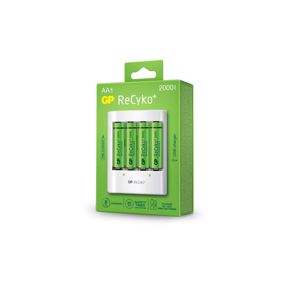 - Pack promotionnel: 4 piles GP ReCyko 2000 mAh AA et un chargeur de piles, pour le prix de 4 piles