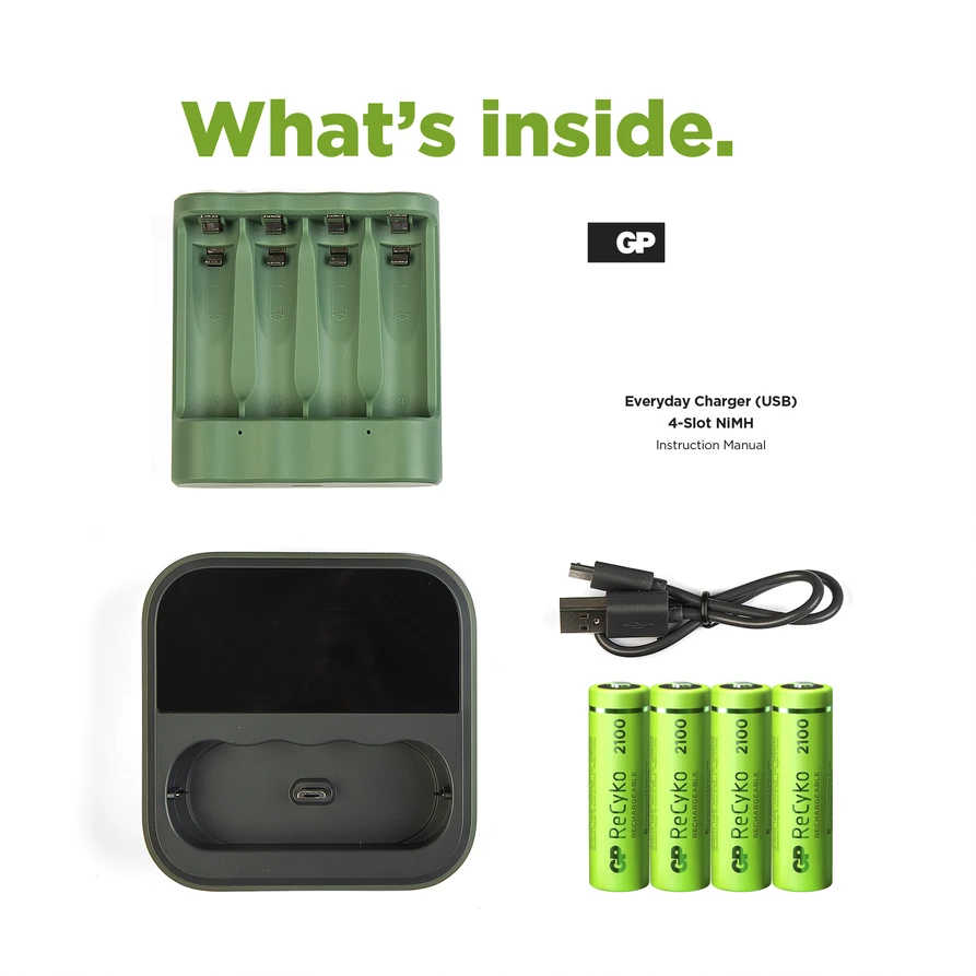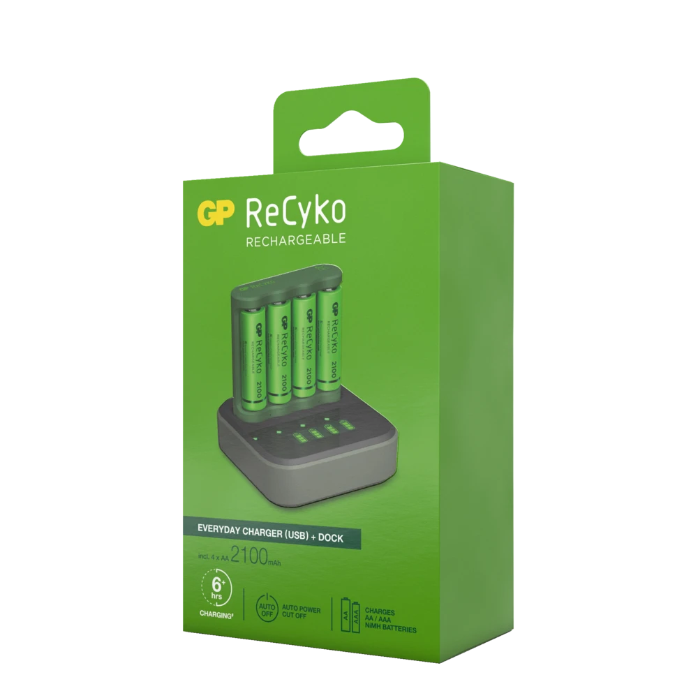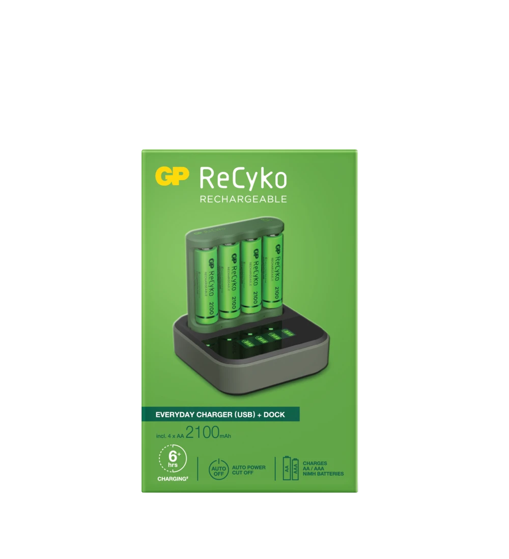 GP ReCyko Everyday Chargeur B421 (USB) avec station de charge D451, incl. 4x piles AA 2100mAh NiMH