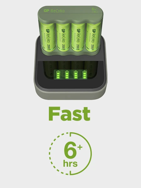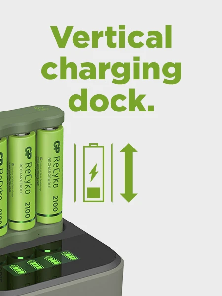 En tant que fabricant leader de batteries, nous voulons que vous rejoigniez notre révolution. Nous avons pris position pour un avenir plus vert en améliorant encore nos batteries rechargeables et chargeurs. En combinant les nouvelles technologies et l'accent mis sur la convivialité, nous présentons un nouveau concept rechargeable GP ReCyko. Maintenant, il est plus facile que jamais de recharger vos batteries.