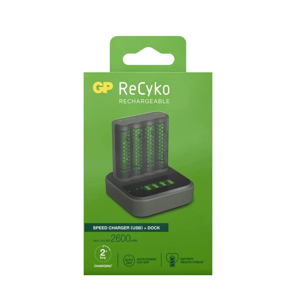 GP ReCyko Speed Chargeur M451 (USB) avec station de charge D451, incl. 4x piles AA 2600mAh NiMH