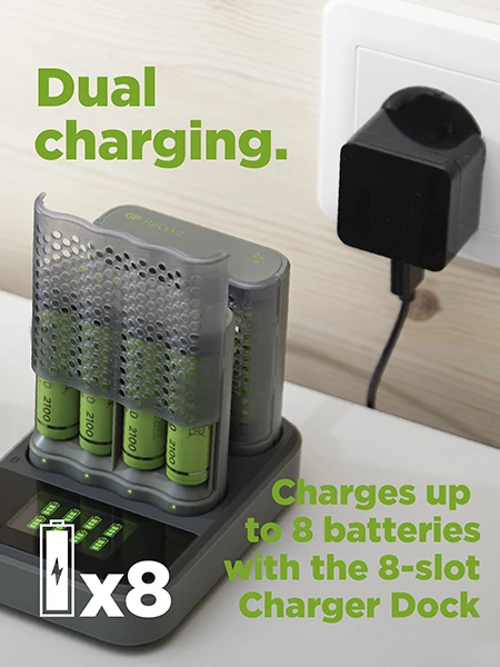 En tant que fabricant leader de batteries, nous voulons que vous rejoigniez notre révolution. Nous avons pris position pour un avenir plus vert en améliorant encore nos batteries rechargeables et chargeurs. En combinant les nouvelles technologies et l'accent mis sur la convivialité, nous présentons un nouveau concept rechargeable GP ReCyko. Maintenant, il est plus facile que jamais de recharger vos batteries.