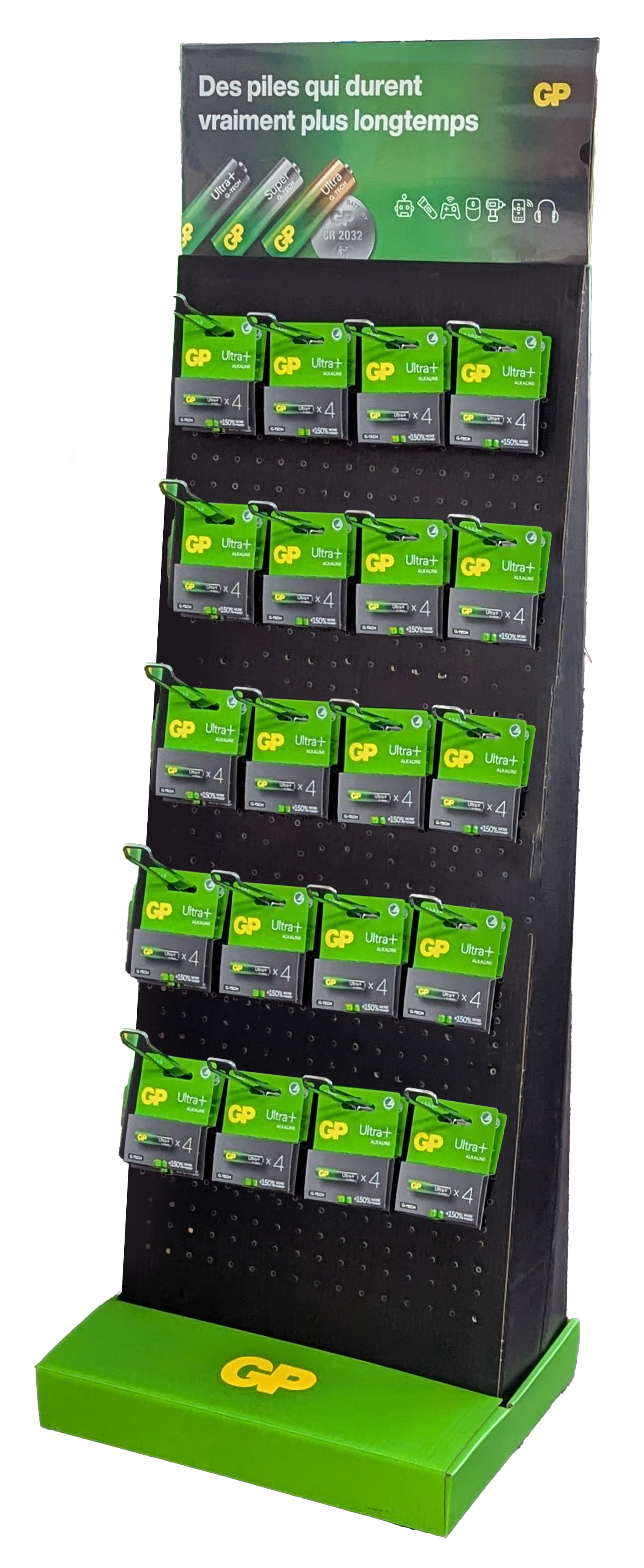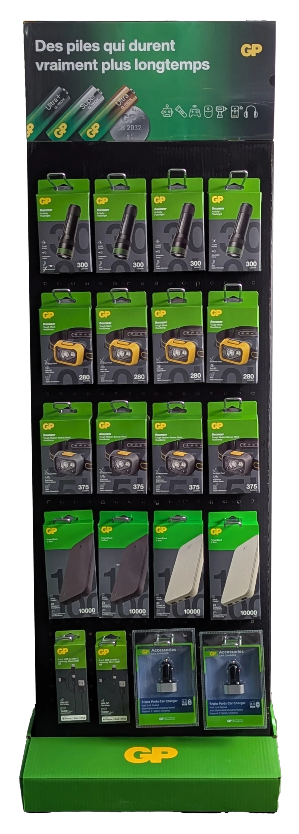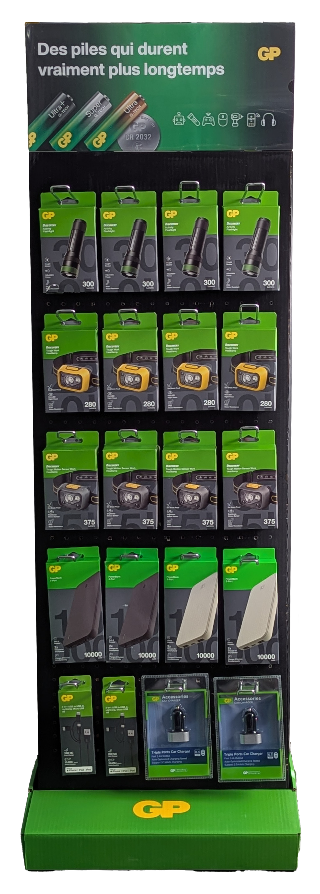 Avec son design aux couleurs iconiques de GP, ce présentoir crée un véritable point d’attraction en magasin.
