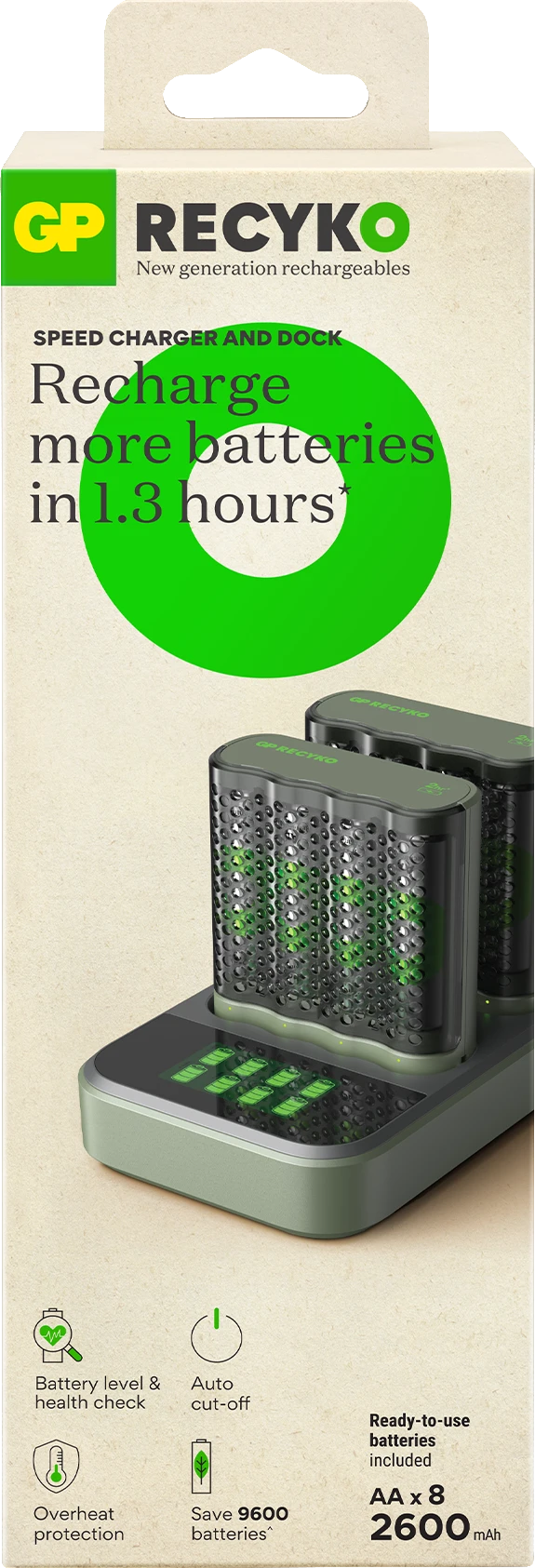 En tant que fabricant leader de batteries, nous voulons que vous rejoigniez notre révolution. Nous avons pris position pour un avenir plus vert en améliorant encore nos batteries rechargeables et chargeurs. En combinant les nouvelles technologies et l'accent mis sur la convivialité, nous présentons un nouveau concept rechargeable GP Recyko. Maintenant, il est plus facile que jamais de recharger vos batteries.