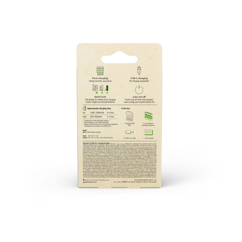 Réduisez le coût lié aux piles classiques et simplifiez votre recharge avec le chargeur GP Recyko B423.