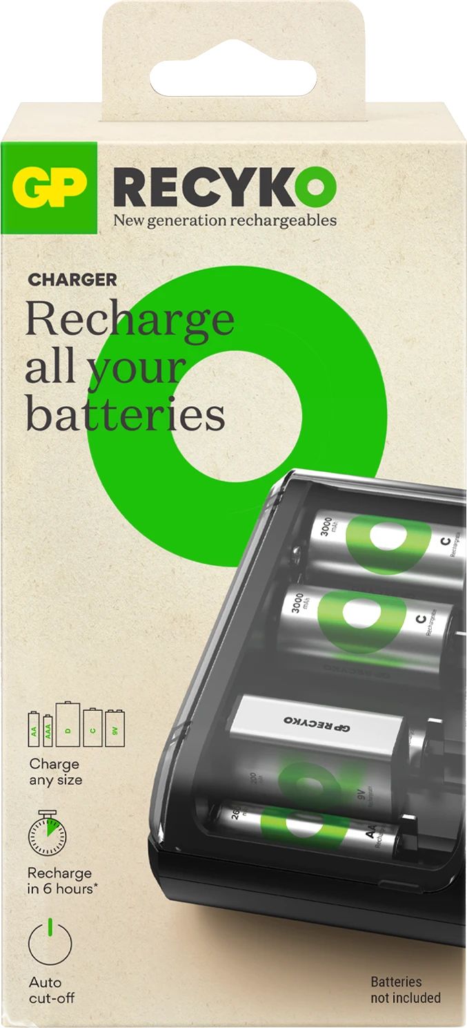 En tant que fabricant leader de batteries, nous voulons que vous rejoigniez notre révolution. Nous avons pris position pour un avenir plus vert en améliorant encore nos batteries rechargeables et chargeurs. En combinant les nouvelles technologies et l'accent mis sur la convivialité, nous présentons un nouveau concept rechargeable GP Recyko. Maintenant, il est plus facile que jamais de recharger vos batteries.