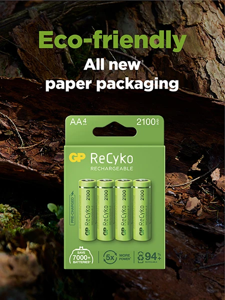 En tant que fabricant leader de batteries, nous voulons que vous rejoigniez notre révolution. Nous avons pris position pour un avenir plus vert en améliorant encore nos batteries rechargeables et chargeurs. En combinant les nouvelles technologies et l'accent mis sur la convivialité, nous présentons un nouveau concept rechargeable GP ReCyko. Maintenant, il est plus facile que jamais de recharger vos batteries.