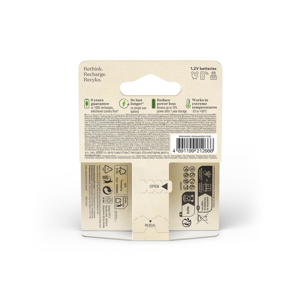 Une pile AAA NiMH rechargeable aux propriétés respectueuses de l'environnement, mettant moins de stress sur l'environnement et votre portefeuille. Pré-chargé et prêt à l'emploi, il peut rester chargé jusqu'à 70% après 12 mois grâce à son faible taux d'autodécharge. Avec une température de fonctionnement allant de -20 ° C à +50 ° C, il offre des performances fiables même dans des environnements extrêmes. Composée de plus de 10% de matériaux recyclés et 94% + de l'ensemble de la batterie, y compris la boîte, peuvent également être recyclés