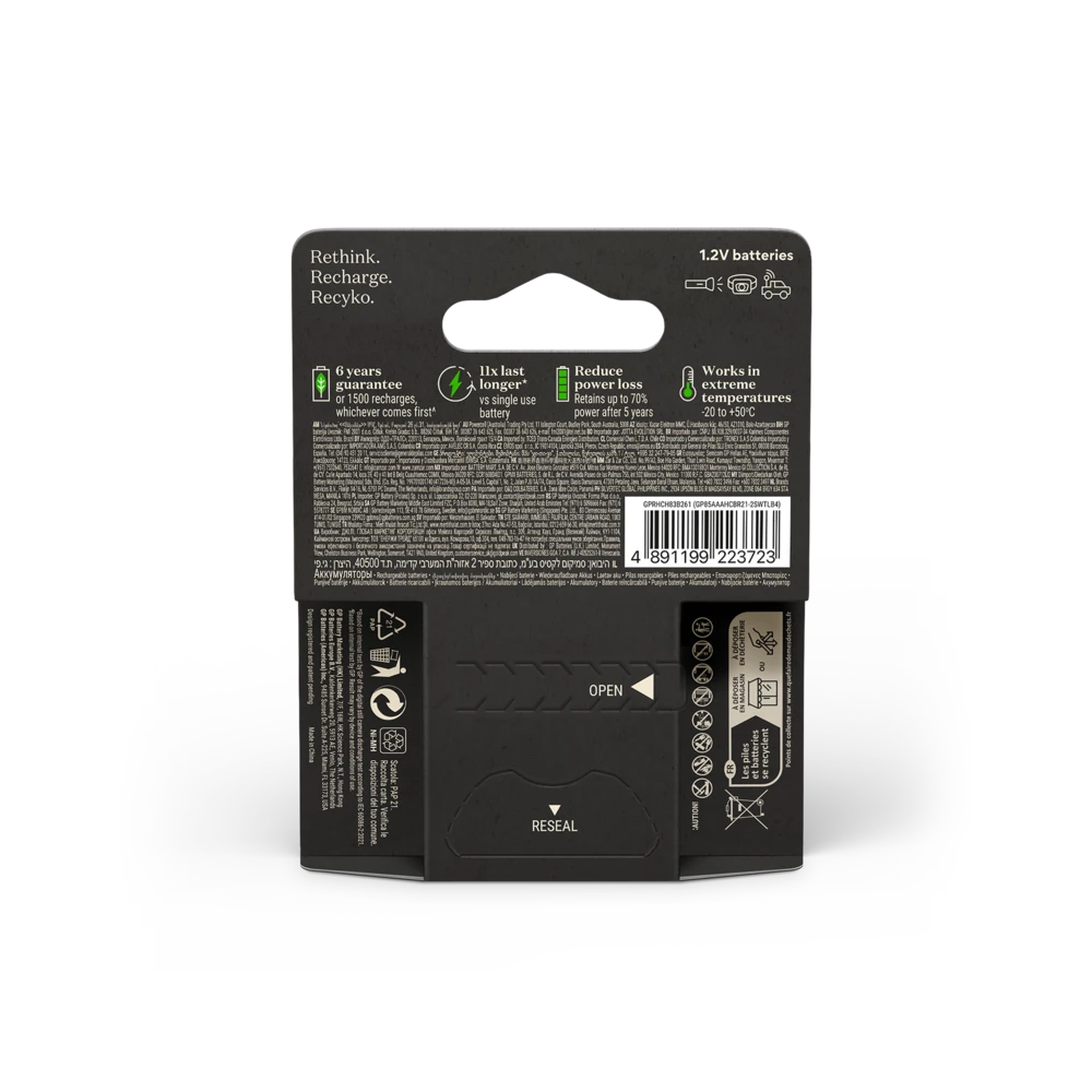 En tant que fabricant leader de batteries, nous voulons que vous rejoigniez notre révolution. Nous avons pris position pour un avenir plus vert en améliorant encore nos batteries rechargeables et chargeurs. En combinant les nouvelles technologies et l'accent mis sur la convivialité, nous présentons un nouveau concept rechargeable GP ReCyko. Maintenant, il est plus facile que jamais de recharger vos batteries.