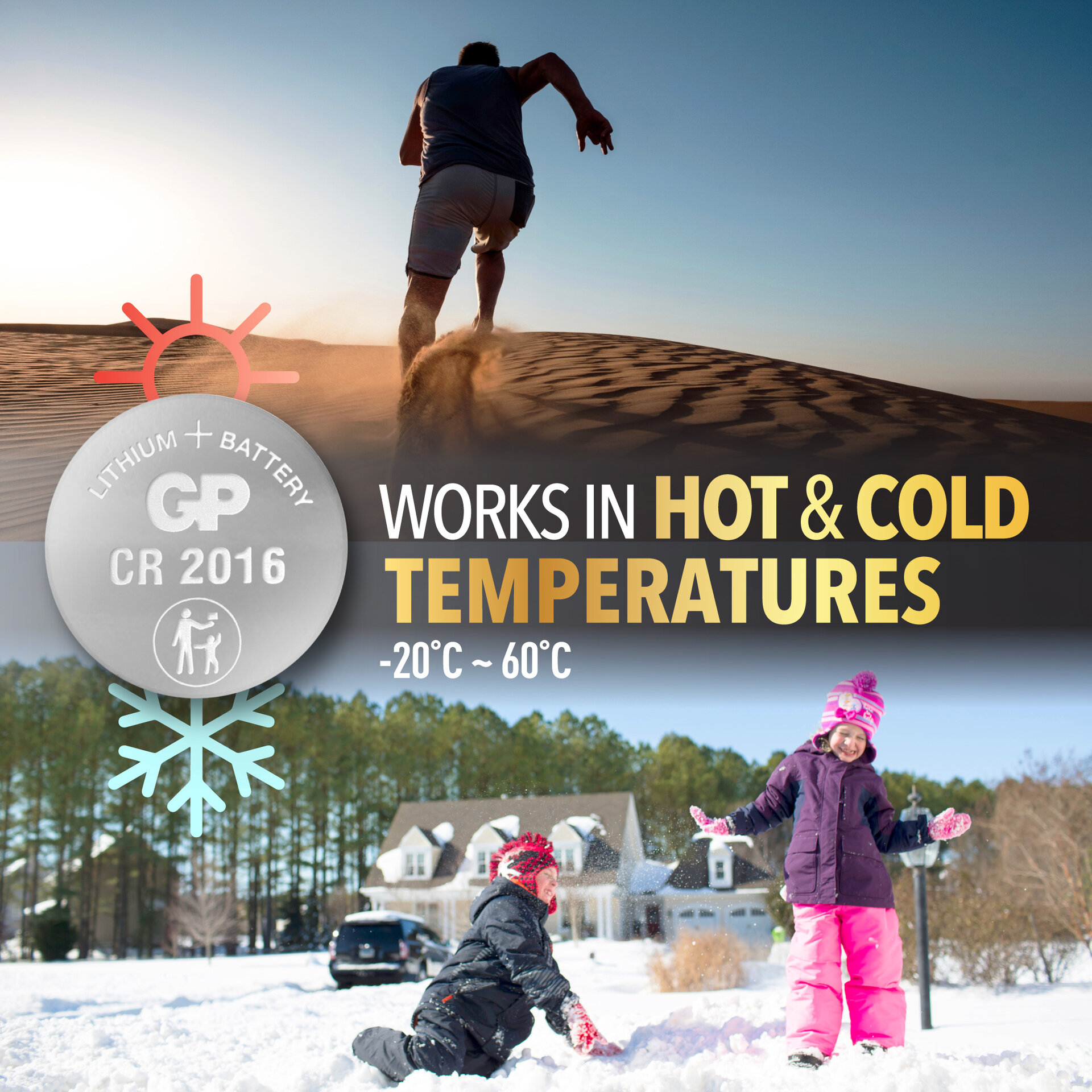 Les piles bouton au lithium haute performance GP CR2016 sont denses en énergie et peuvent fournir 30% de puissance en plus* pour vos appareils spécialisés miniatures, notamment les clés de voiture, les télécommandes, les montres intelligentes, les glucomètres, les appareils domestiques intelligents, les appareils IoT, les capteurs de portes et de fenêtres. Avec des propriétés remarquables de conservation de l'énergie et une durée de vie allant jusqu'à 10 ans lorsqu'elles sont correctement stockées dans un endroit frais et sec, vous ne serez jamais pris avec des piles à plat. Conçues pour fonctionner même dans des conditions extrêmes, elles fonctionnent de manière fiable de -20°C à +60°C. La sécurité avant tout - ces piles ne sont pas seulement conçues pour protéger vos gadgets grâce à leur construction étanche, mais aussi pour protéger vos proches grâce à un emballage à l'épreuve des enfants.