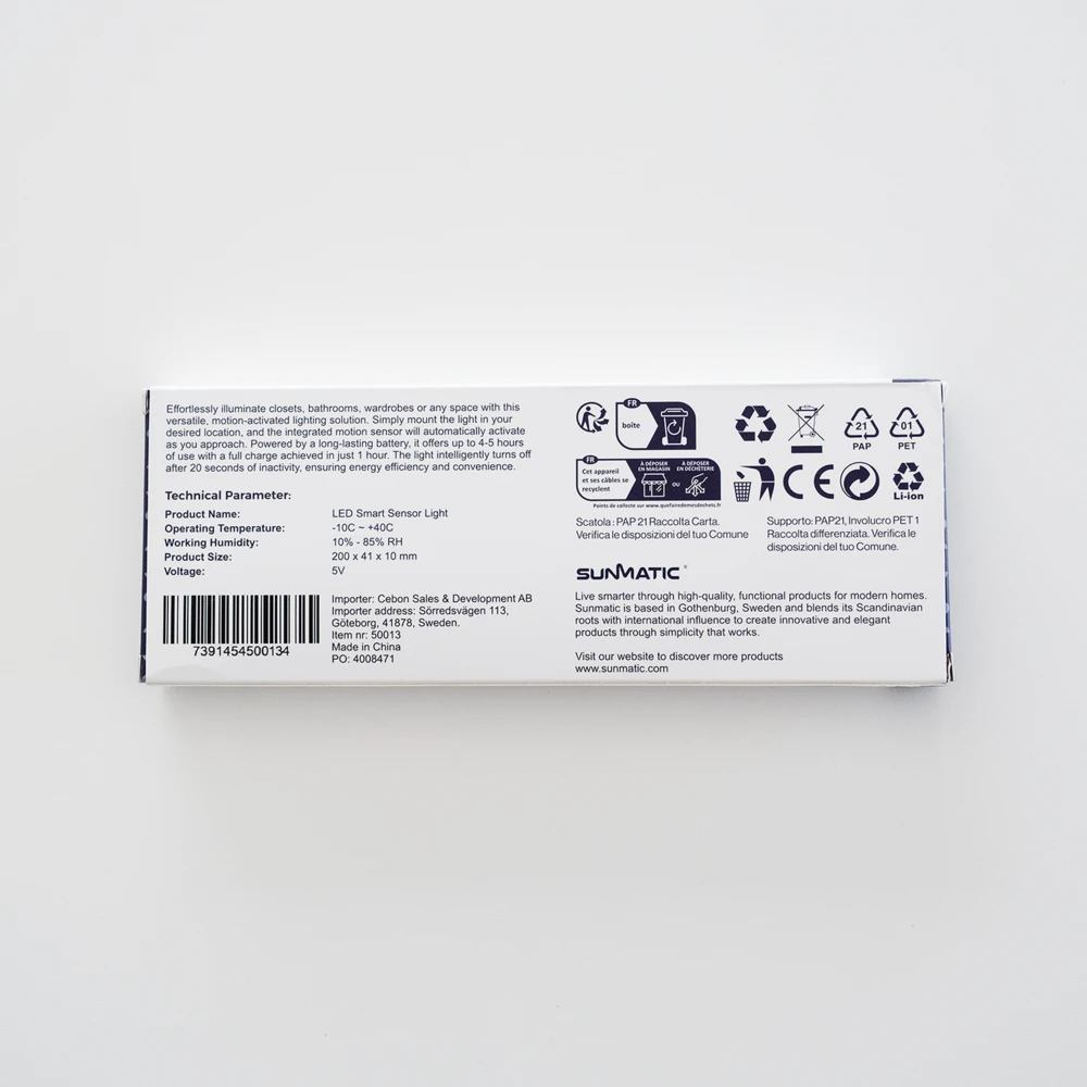 Apportez de la lumière dans vos placards, escaliers, penderies ou tout autre recoin grâce à cette solution d’éclairage intelligente à détection de mouvement. La lampe LED à capteur combine design minimaliste et utilisation intuitive.