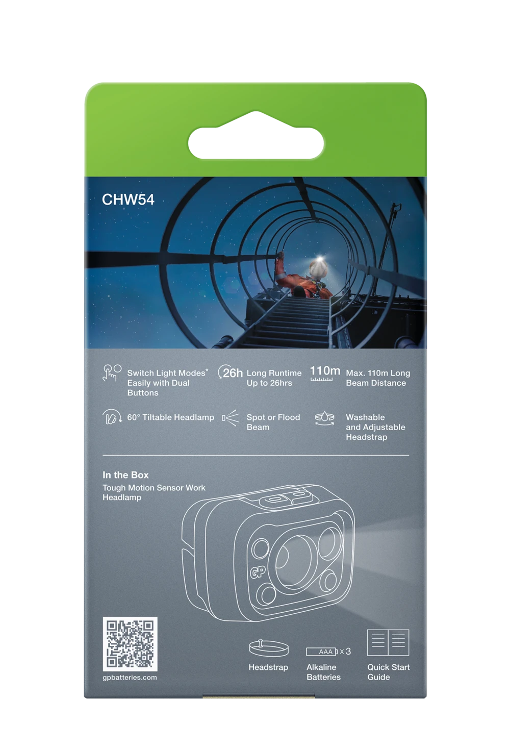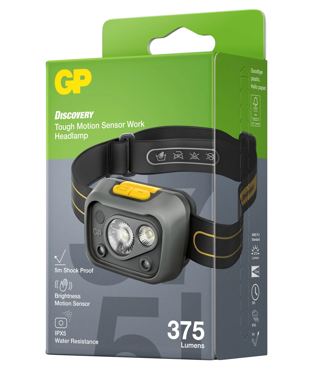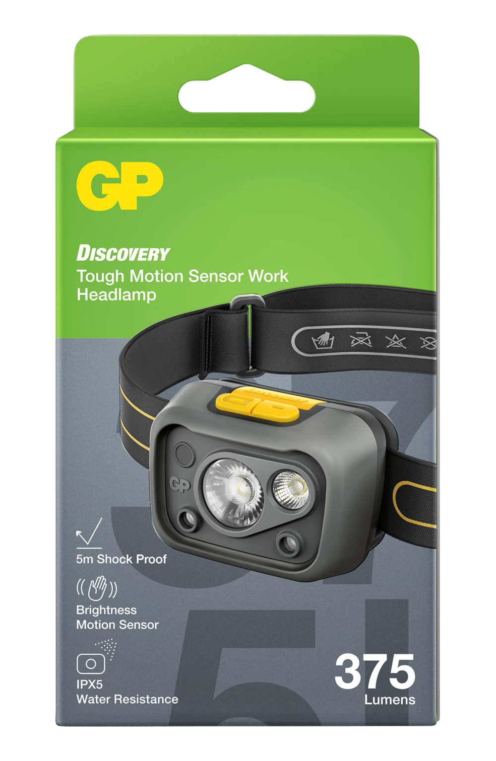 Le GP Discovery Work CHW54 est conçu pour ceux qui veulent poursuivre leur travail ou leur projet de bricolage malgré le coucher du soleil ou un mauvais éclairage. Il a une luminosité allant jusqu'à 375 lumens et 4 modes d'éclairage différents, dont SOS. Elle est également équipée d'un capteur de mouvement, ce qui permet de régler la luminosité d'un simple geste devant la lampe. Cela en fait la lampe frontale parfaite pour les travaux où vous avez les mains sales ou devez porter des gants. La GP Discovery Work CHW54 est l'une de nos lampes frontales les plus robustes et les plus durables. Elle résiste aux chutes jusqu'à 5 mètres et est classée IPX5, ce qui signifie qu'elle est ignifuge. Le large bandeau est lavable en machine et facilement réglable pour un confort maximal. La lampe frontale est compatible avec les piles jetables et rechargeables (NiMH), ce qui en fait une lampe tout-en-un flexible et prête pour tous les projets.