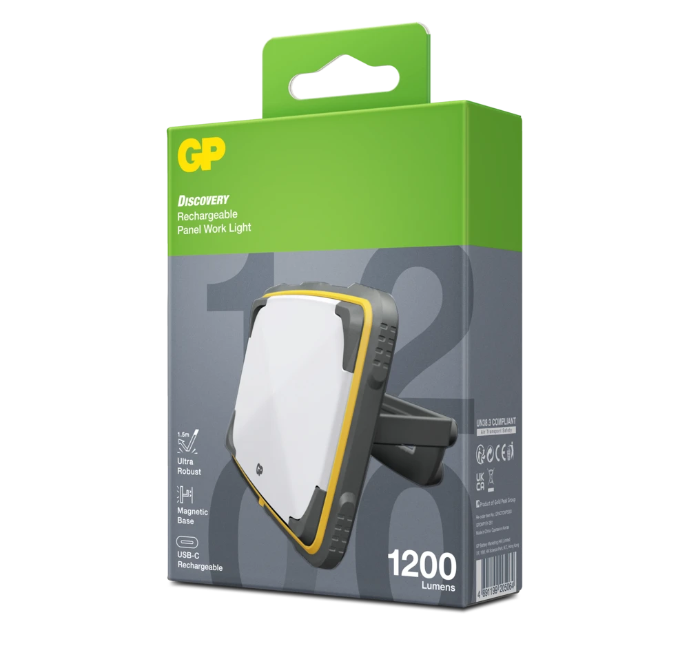 Petit et puissant lampe de travail GP Discovery Work CWP15 est étonnamment petit : 156 x 115 x 35 mm. Malgré cela, il possède une lumière puissante qui peut être commutée en 3 modes d'éclairage : 1200 / 700 / 250 lumens. Cela lui permet d'éclairer efficacement aussi bien les petits espaces que les grandes zones, avec une portée pouvant atteindre 45 mètres. lampe de travail convient aussi bien aux projets quotidiens qu'à un usage professionnel. C'est votre futur favori, que vous ayez besoin de lumière dans le garage, pour des projets de décoration intérieure ou sous la tente.