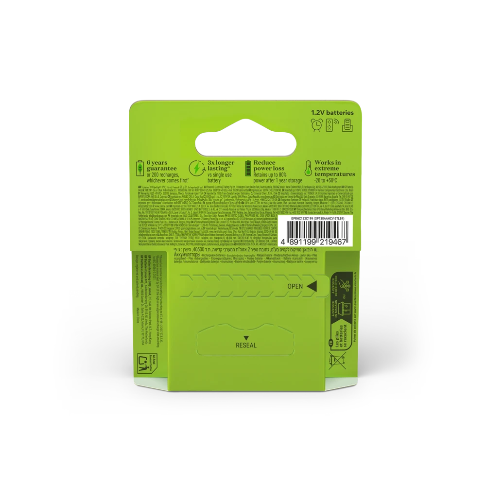 GP Recharge è la gamma di batterie progettata per sfidare anche i più ostinati utilizzatori di batterie usa e getta. Scegliere una batteria ricaricabile non solo fa risparmiare denaro, ma riduce anche l'impatto ambientale: perché comprare 200 batterie quando ne basta una?