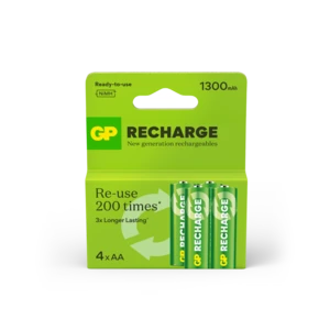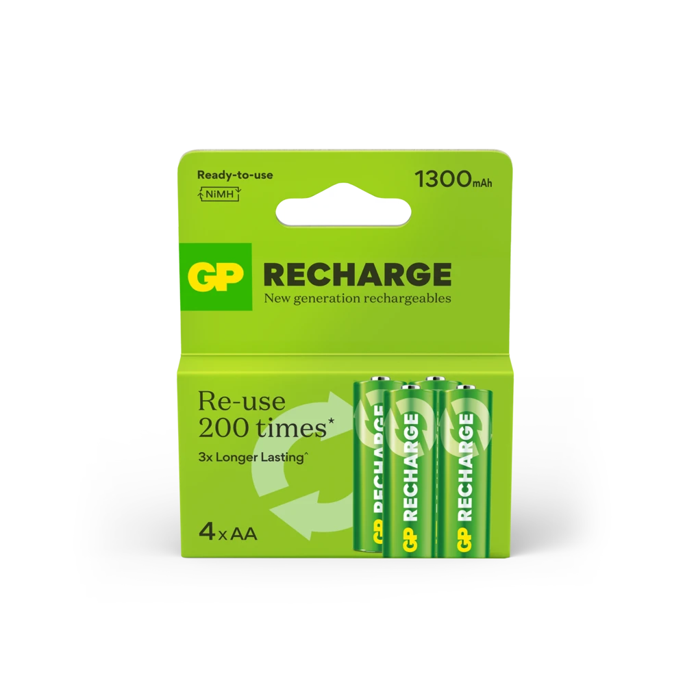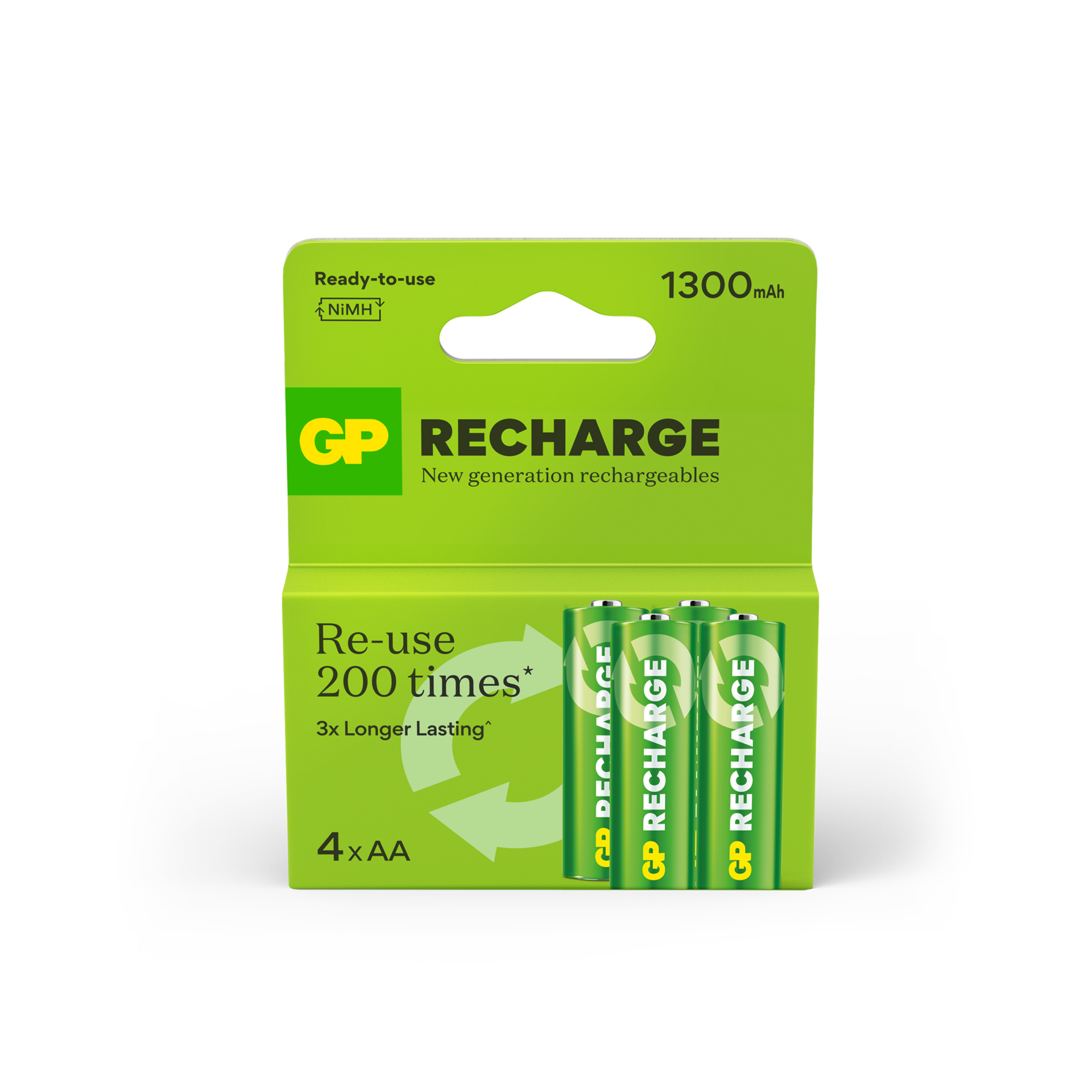 Batteria GP Recharge AA, 1300 mAh, confezione da 4
