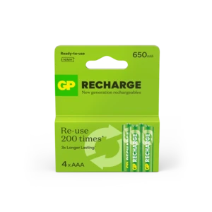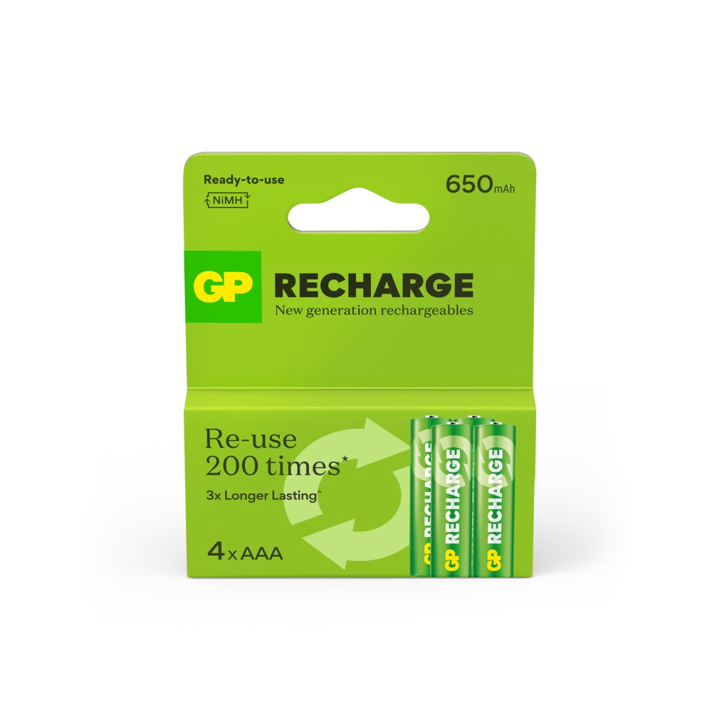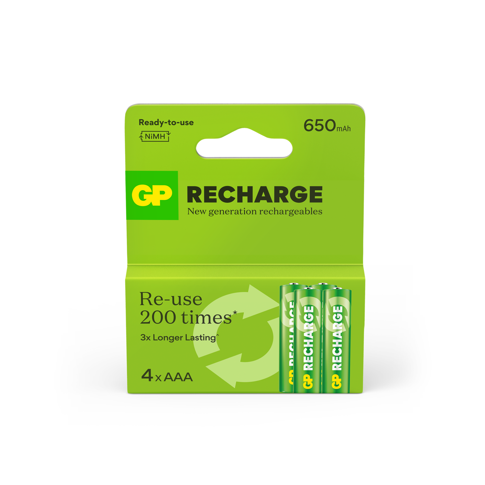 Batteria GP Recharge AAA, 650 mAh, confezione da 4
