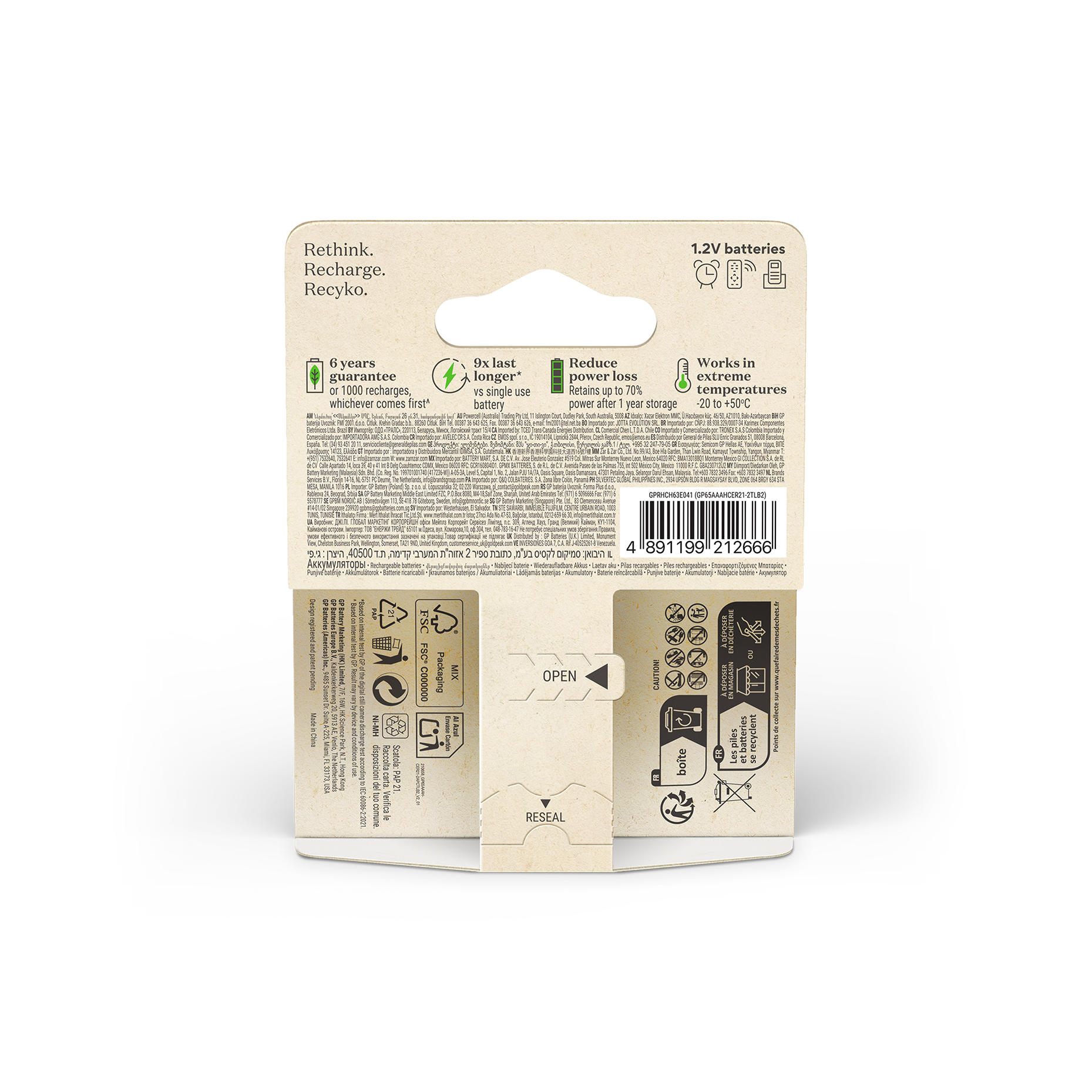 Un innovativo sistema modulare di batterie e caricabatterie. Alla GP Batteries spingiamo ancora una volta i confini di come si usano le batterie. I nuovi caricabatterie GP ReCyko sono intelligenti, leggeri, portatili e, soprattutto, facili da usare. Sono inoltre progettati in modo intelligente fungendo da vano batteria quando non in uso.
