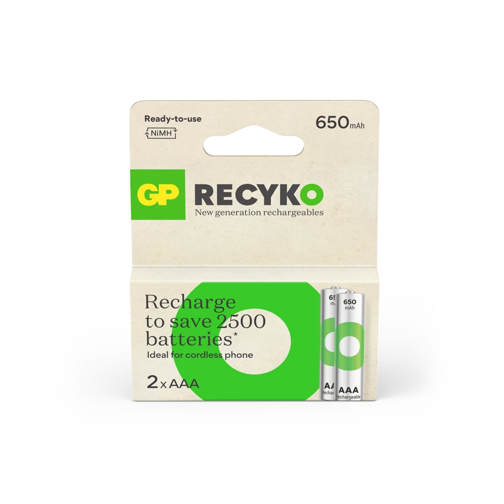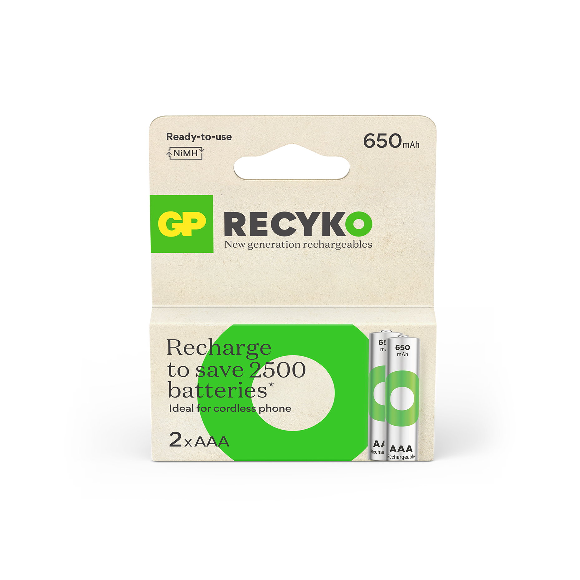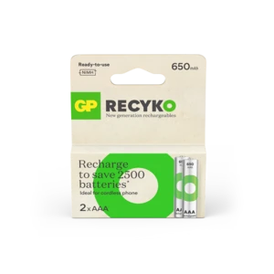 Batteria GP ReCyko AAA, 650 mAh, confezione da 2