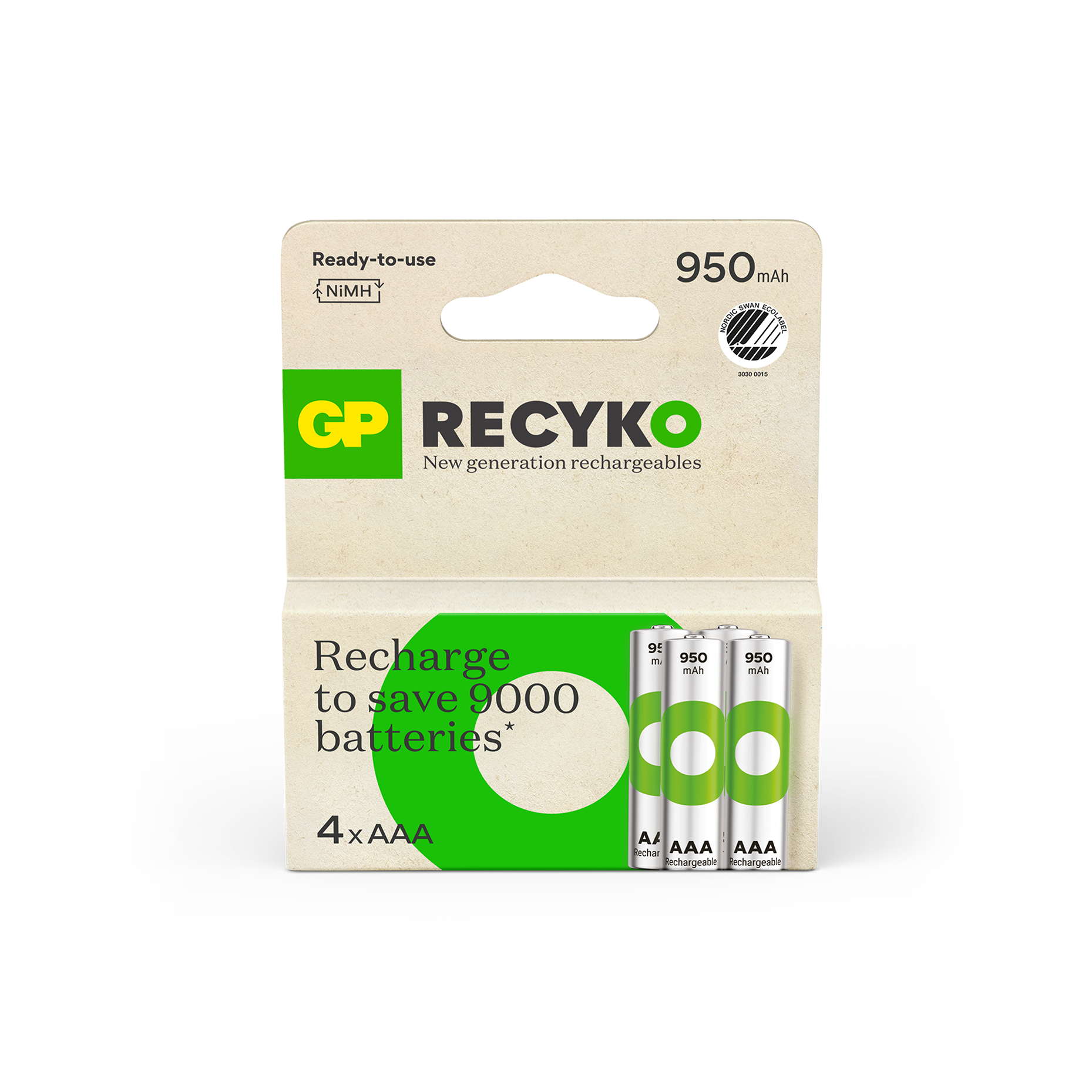 Batteria GP Recyko AAA, 950 mAh, confezione da 4