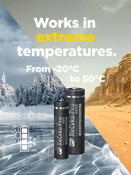 La gamma di batterie ReCyko Pro è stata sviluppata per lavori difficili. Hanno un'enorme resistenza con un basso tasso di scarica: la carica della batteria viene mantenuta fino al 70% anche dopo 5 anni. E continuano a garantire prestazioni ad alta capacità per anni con innumerevoli cicli di carica.