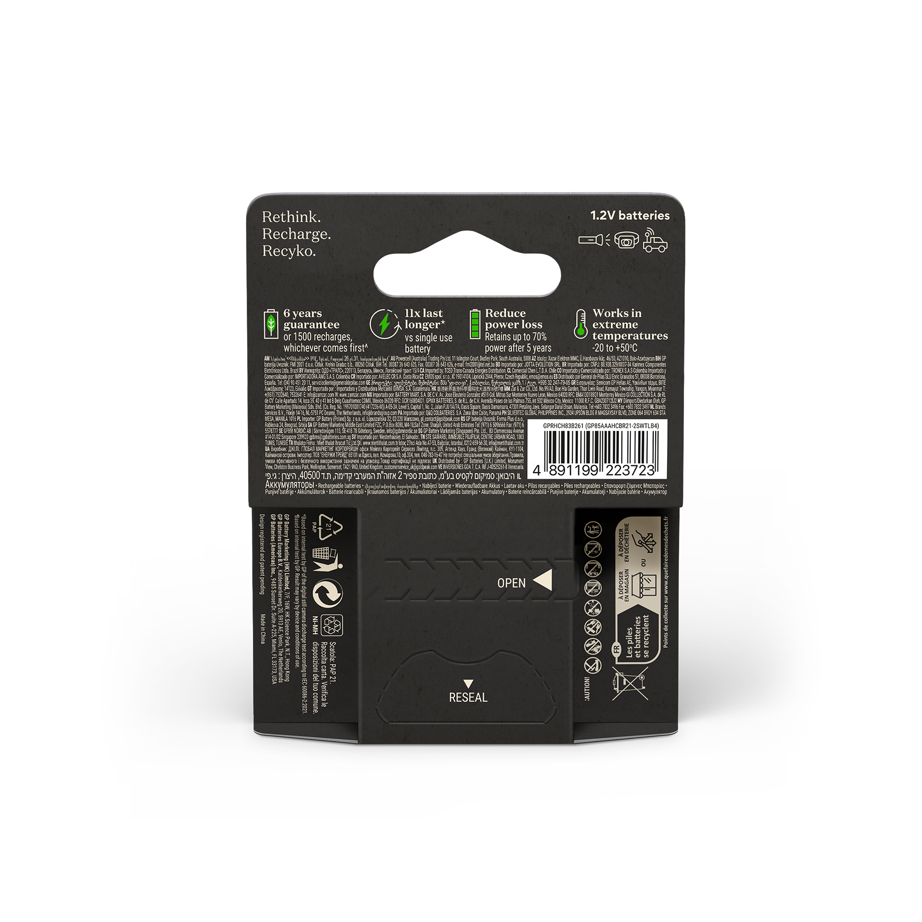 Un innovativo sistema modulare di batterie e caricabatterie. Alla GP Batteries spingiamo ancora una volta i confini di come si usano le batterie. I nuovi caricabatterie GP ReCyko sono intelligenti, leggeri, portatili e, soprattutto, facili da usare. Sono inoltre progettati in modo intelligente fungendo da vano batteria quando non in uso.