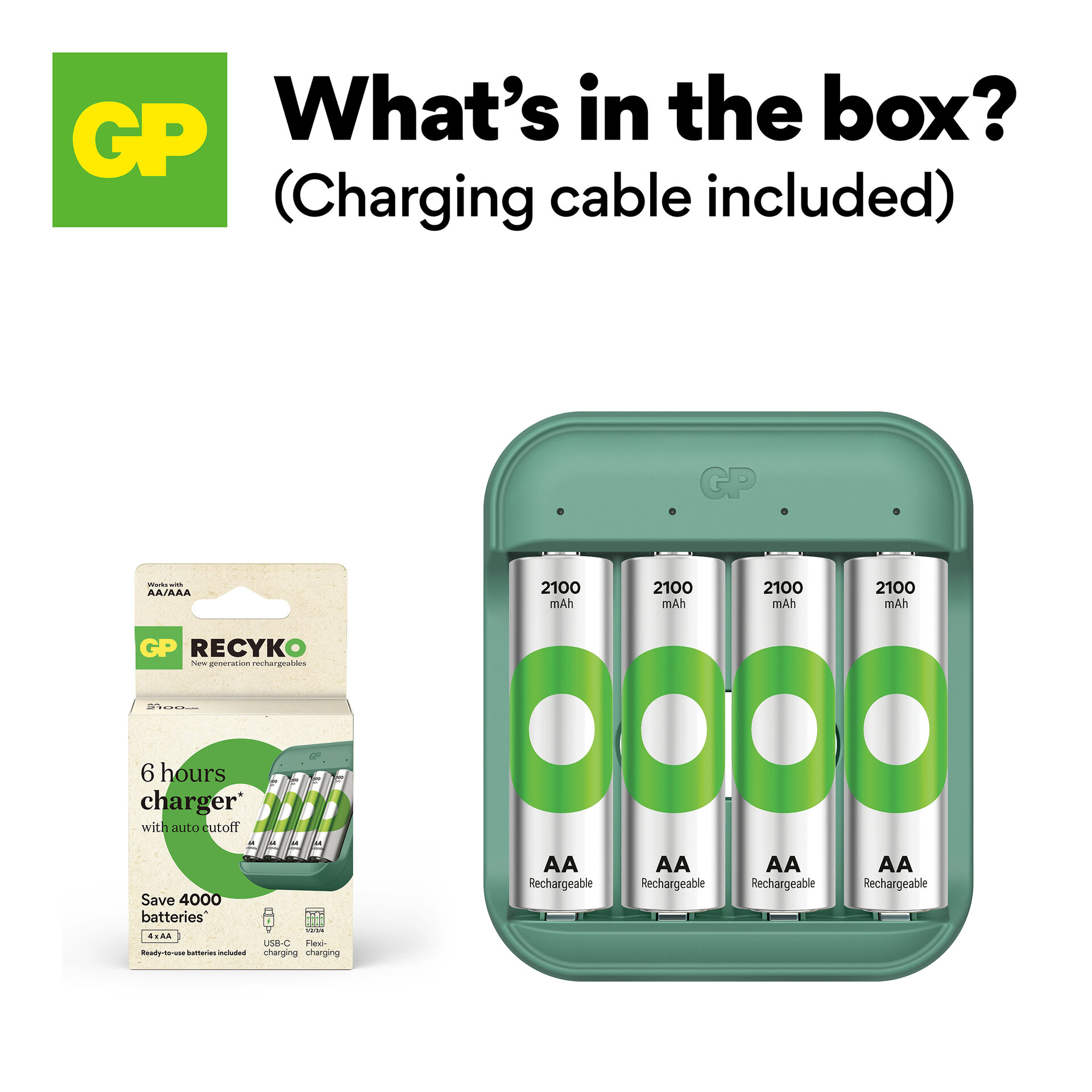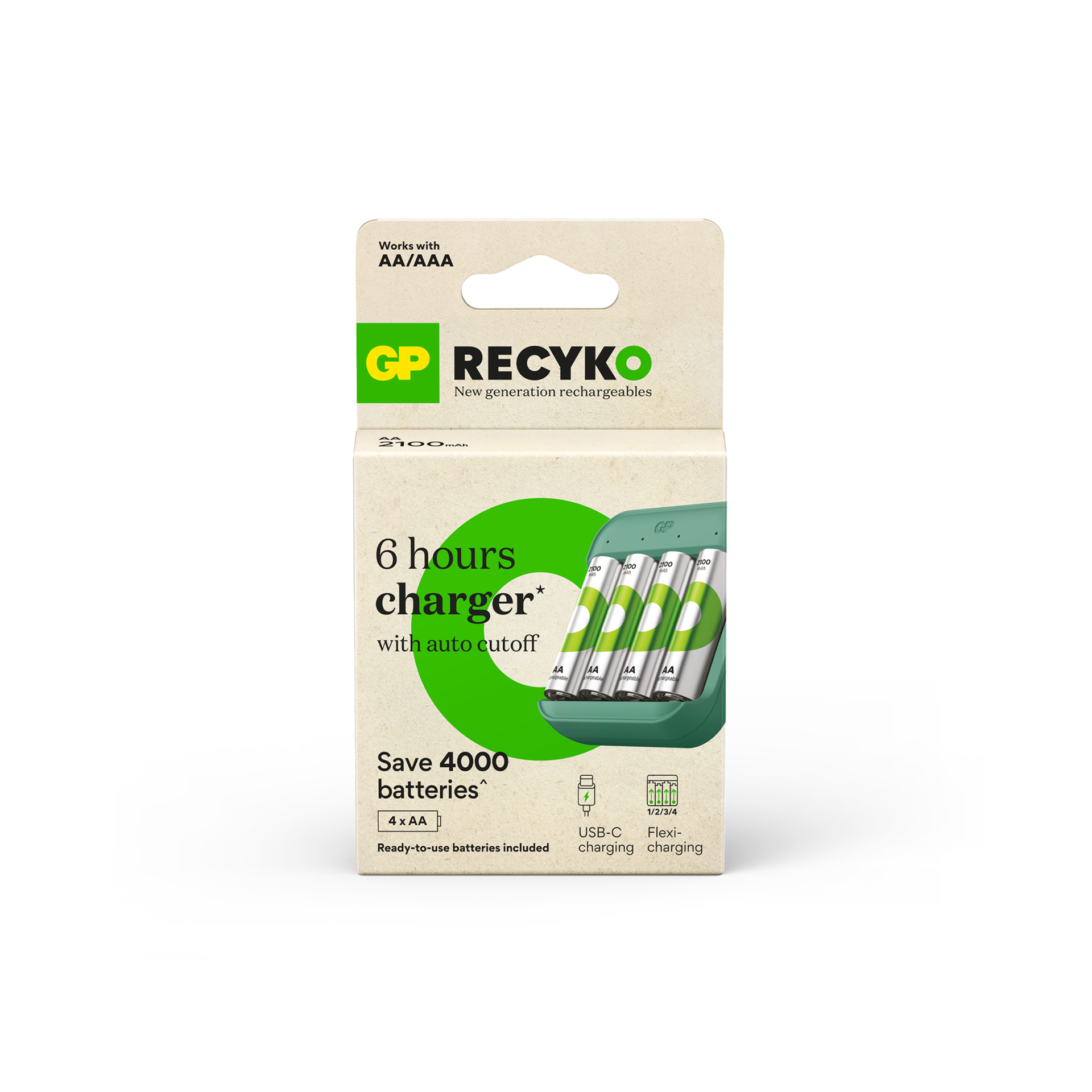 Ricarica in 6 ore – L’alimentazione intelligente garantisce una ricarica rapida in sole 6 ore per 1–4 batterie ricaricabili AA/AAA tramite ingresso USB-C.