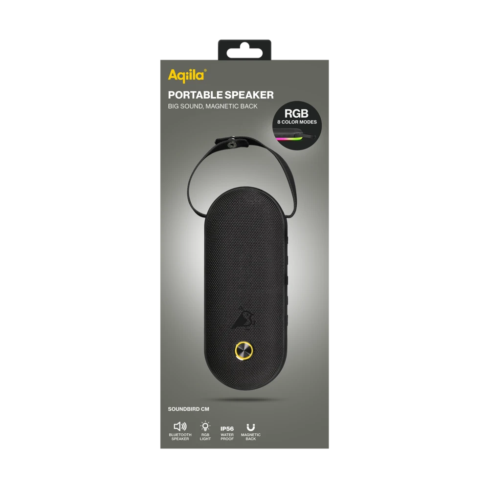 Soundbird CM er ikke bare en bærbar høyttaler, den er din lydkompanjong hvor enn du går. Med 30W stereolyd, en magnetisk bakside for enkel plassering på metallflater og et innebygd RGB-lysshow med 8 moduser, er den skapt for øyeblikk som krever både volum og stemning.