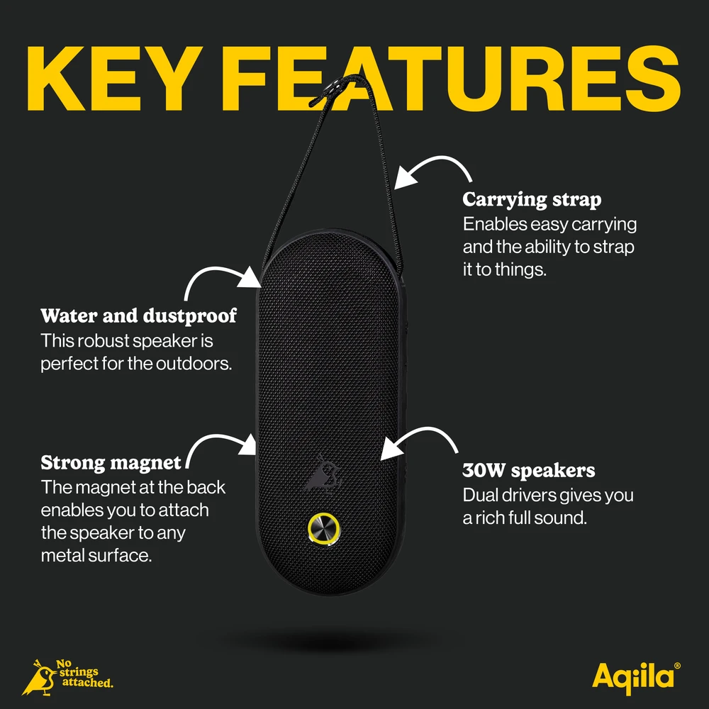 Kraftig 30W bærbar høyttaler med magnetisk bakside, 8 RGB-lysmoduser og multi-høyttaler-synk. Vanntett, støvtett og robust nok til å bli med på alle slags aktiviteter.