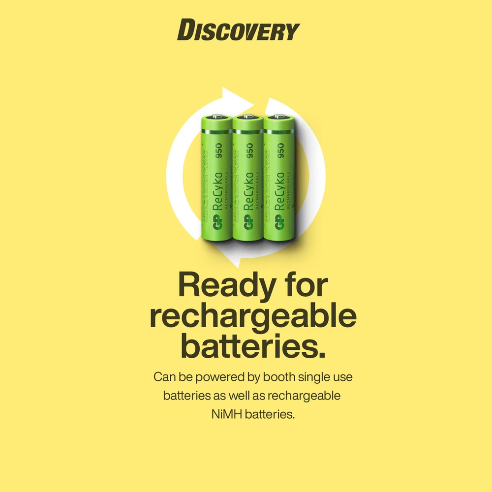 Ditt super sidekick i hverdagen Vær klar for enhver situasjon, forventet som uventet med GP Discovery CH42. Takket være det sprutsikre og støtsikre huset på 1 meter er denne hodelykten ideell for all mulig bruk, både innendørs og utendørs.