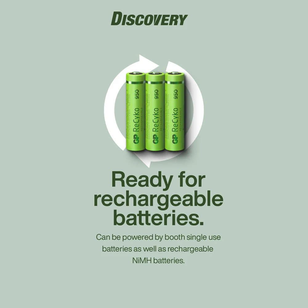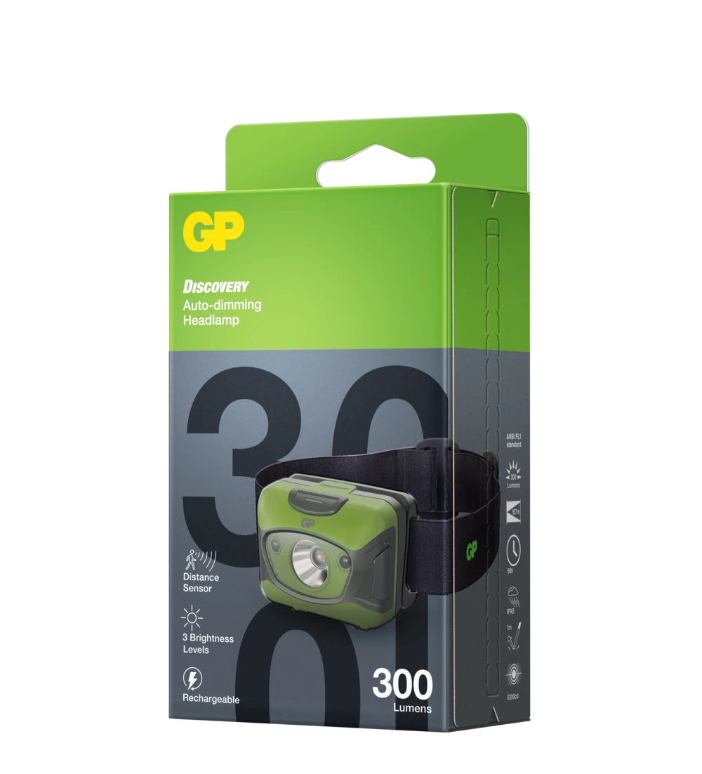Egenskaper • Sensor justerer automatisk lysstyrken etter omgivelsene • Oppladbar (micro-USB) • 3 lysstyrker • Blinkende lysmodus • Drives av 3 x AAA-batterier • Oppladbare NiMH-batterier inngår • Micro-USB kabel inngår • Overlading- og utladingsbeskyttelse • Låsefunksjon forhindrer tilfeldig aktivering • Spesialdesignede GP-spenner for justering med én hånd • Knapp i gummi • Kombinert lampe- og batteripakke • Justerbart lampehode