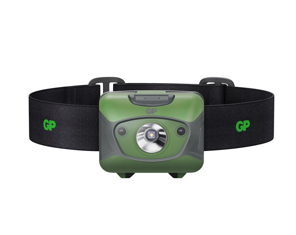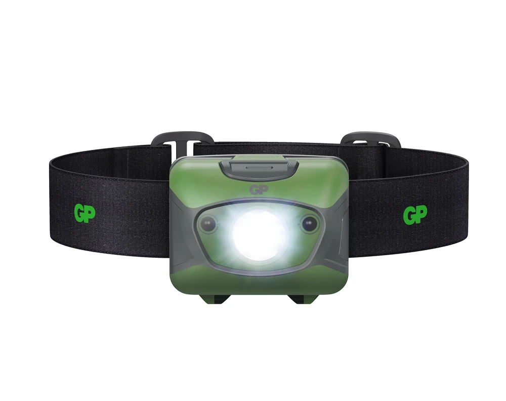 Lyssterk, oppladbar hodelykt med sensor som automatisk tilpasser lysstyrken til omgivelsene.