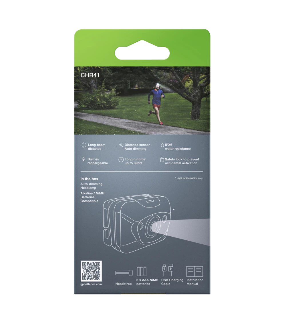 Den oppladbare hodelykten CHR41 er utstyrt med en innovativ sensor som automatisk tilpasser lysstyrken etter omgivelsene. Dette gjør at du alltid får rett lys for ditt gjøremål. På grunn av dette blir det færre manuelle justeringer og instillinger og at hodelyktens driftstid optimaliseres.