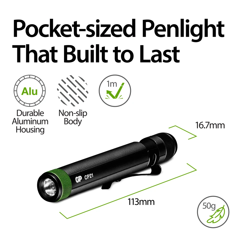 I GP Discovery-utvalget finner du holdbare lykter med det siste innen lysteknologi, noe som gjør dem energieffektive samtidig som de gir kraftig lys. Alle GP Discovery-lykter har utside i aluminium av luftfartskvalitet, noe som gjør dem svært robuste og holdbare. Preget overflate for et behagelig grep og for enklere bruk av fokusfunksjonen.