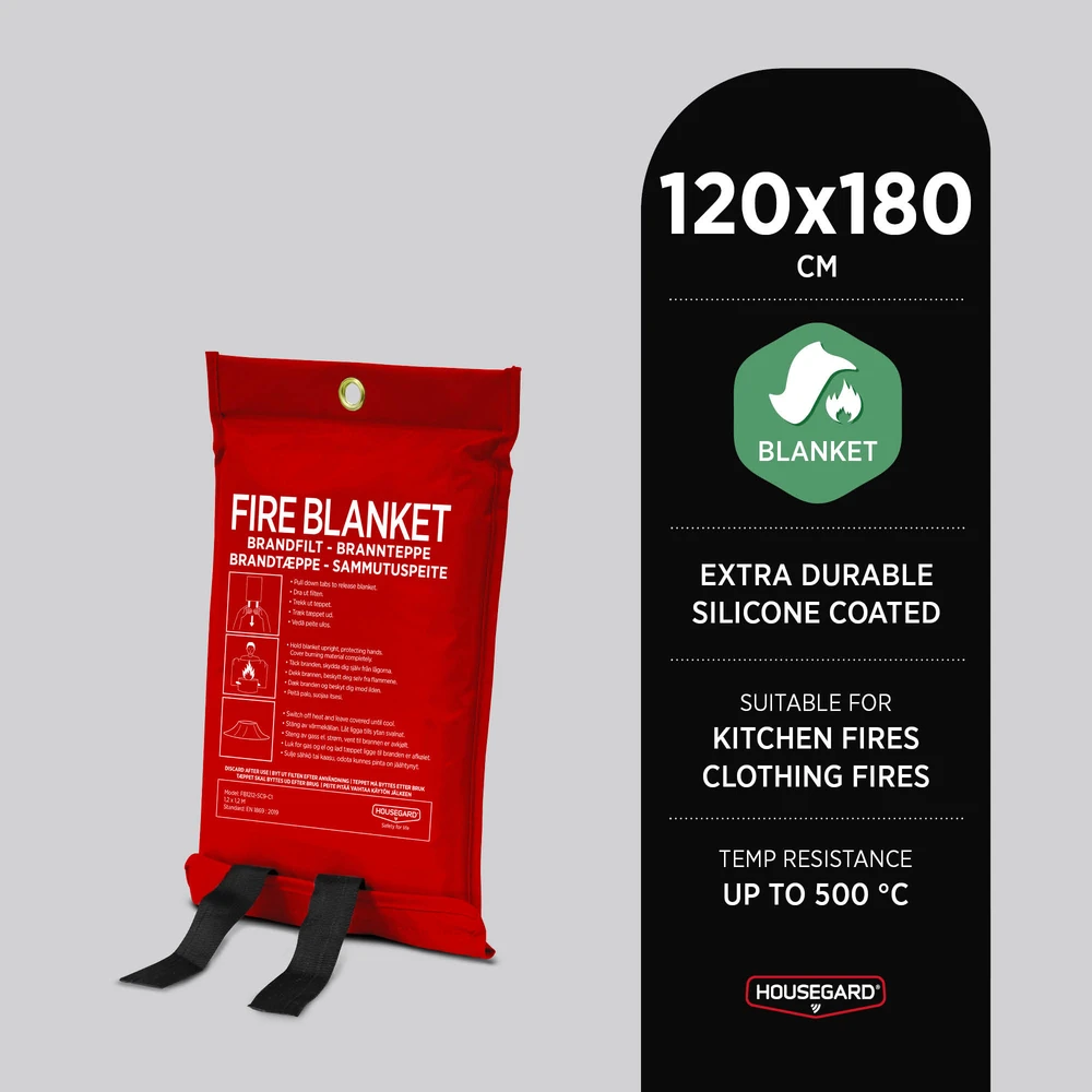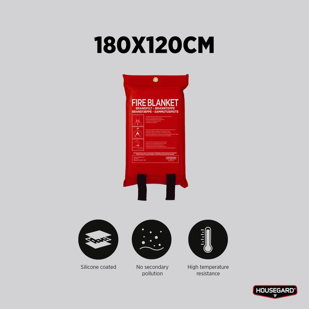 Housegard brannteppe 120x180 cm er et praktisk supplement til brannslukkeren, som først og fremst slukker mindre branner på komfyr, i møbler, klær og mennesker. Å kvele flammen med et brannteppe er veldig effektivt, og krever mindre saneringsarbeid.