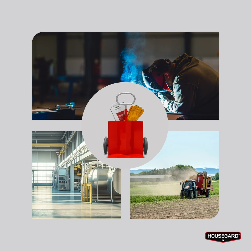 Slokkertralle med et brannteppe & hansker, ET2X6, (varme arbeider)