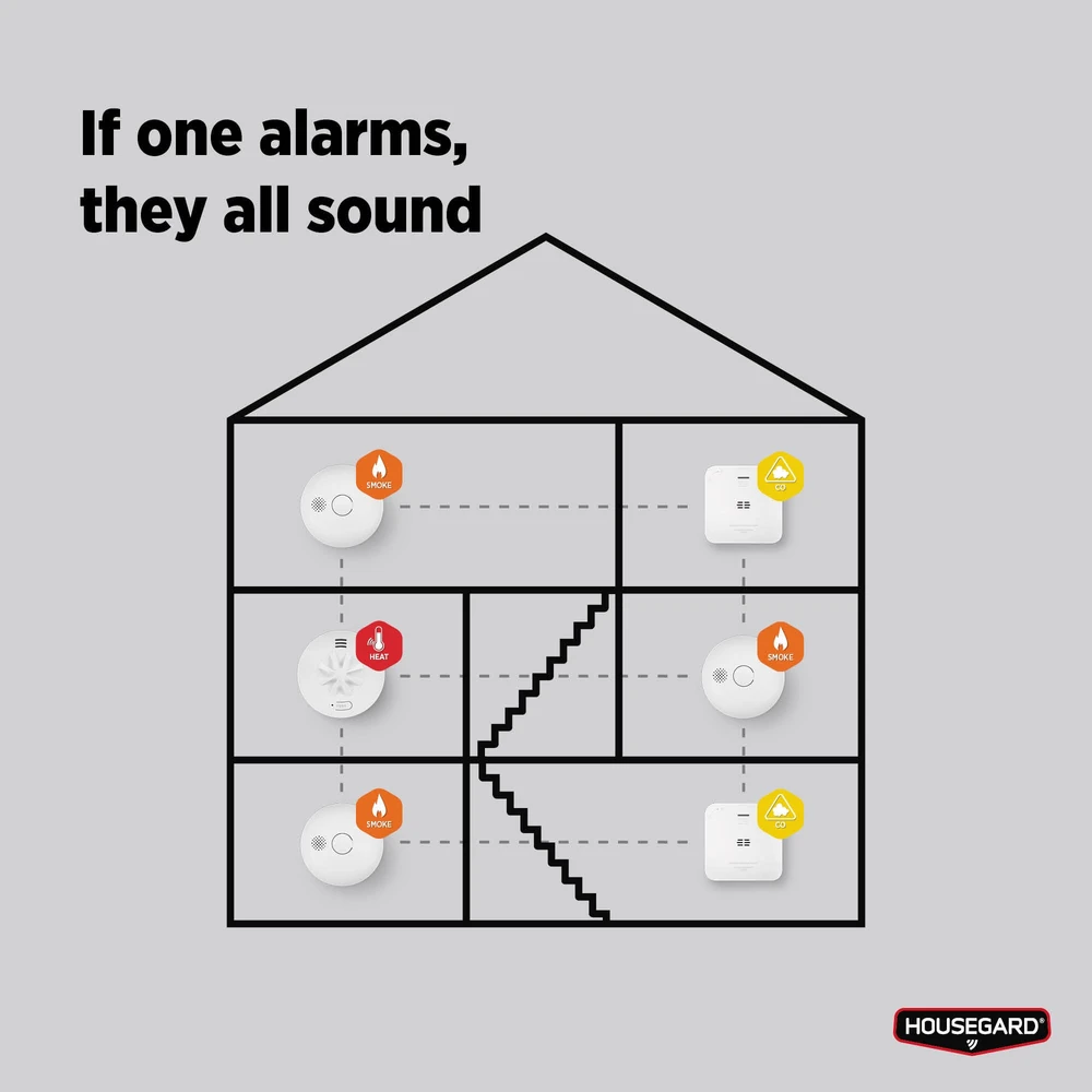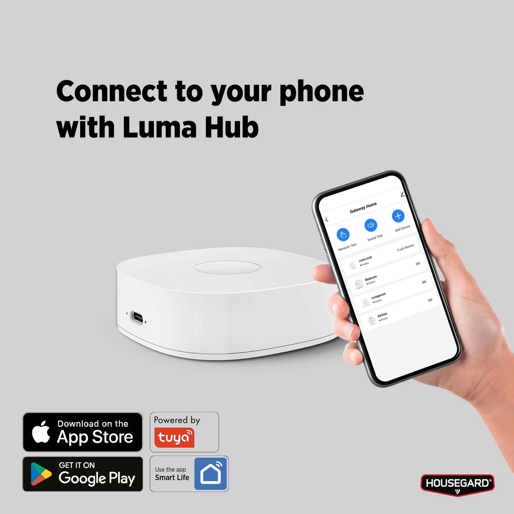 Alle produkter i LUMA-systemet kan enkelt kobles sammen trådløst – med eller uten hub. Dette gjør det mulig å skape et komplett og sammenkoblet trygghetssystem. Kombiner for eksempel med LUMA varmevarsler, røykvarsler eller kullosvarsler for en skreddersydd beskyttelse i hele hjemmet.