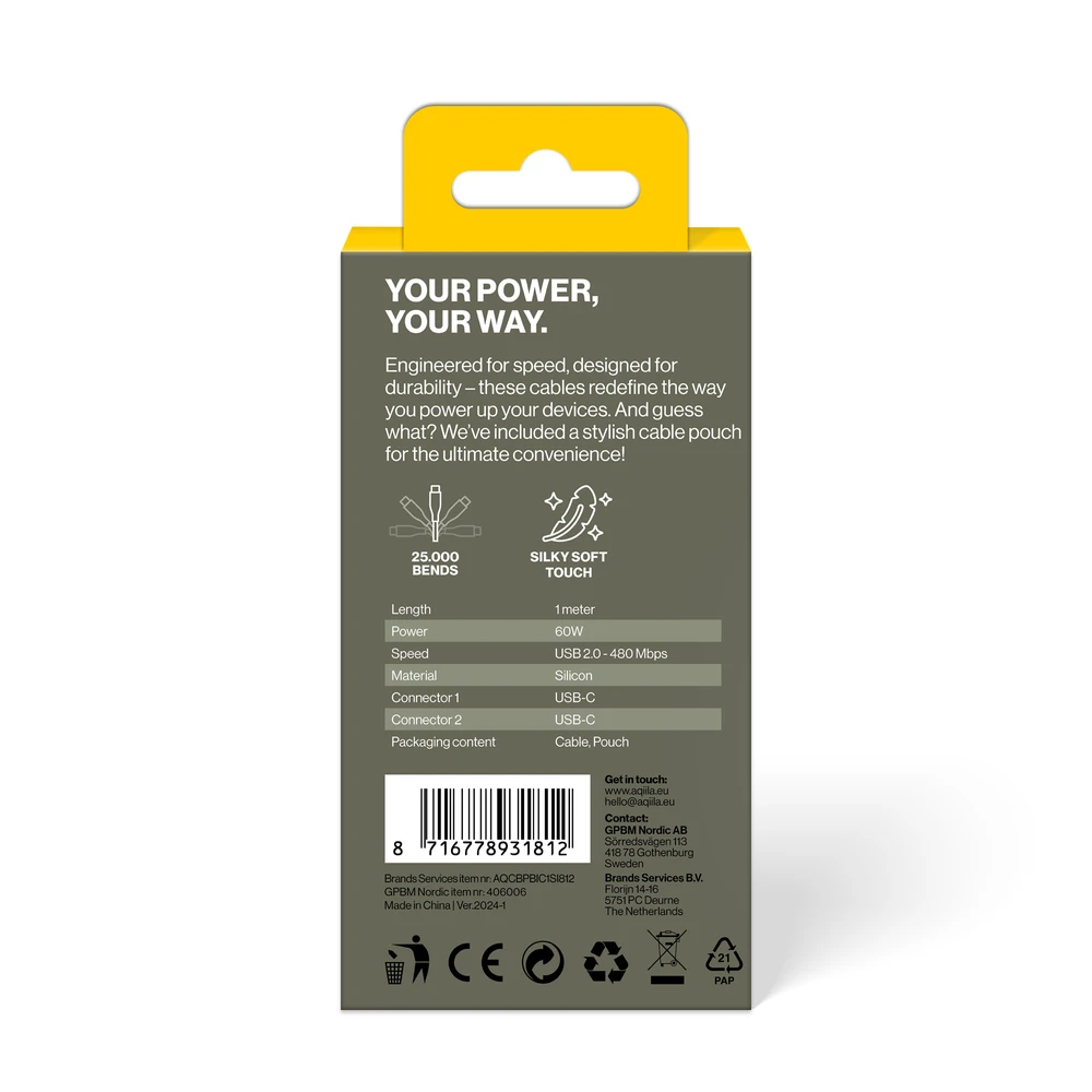 Aqiila Cablebird CS11 kabel USB C til C 60W silikon 1m