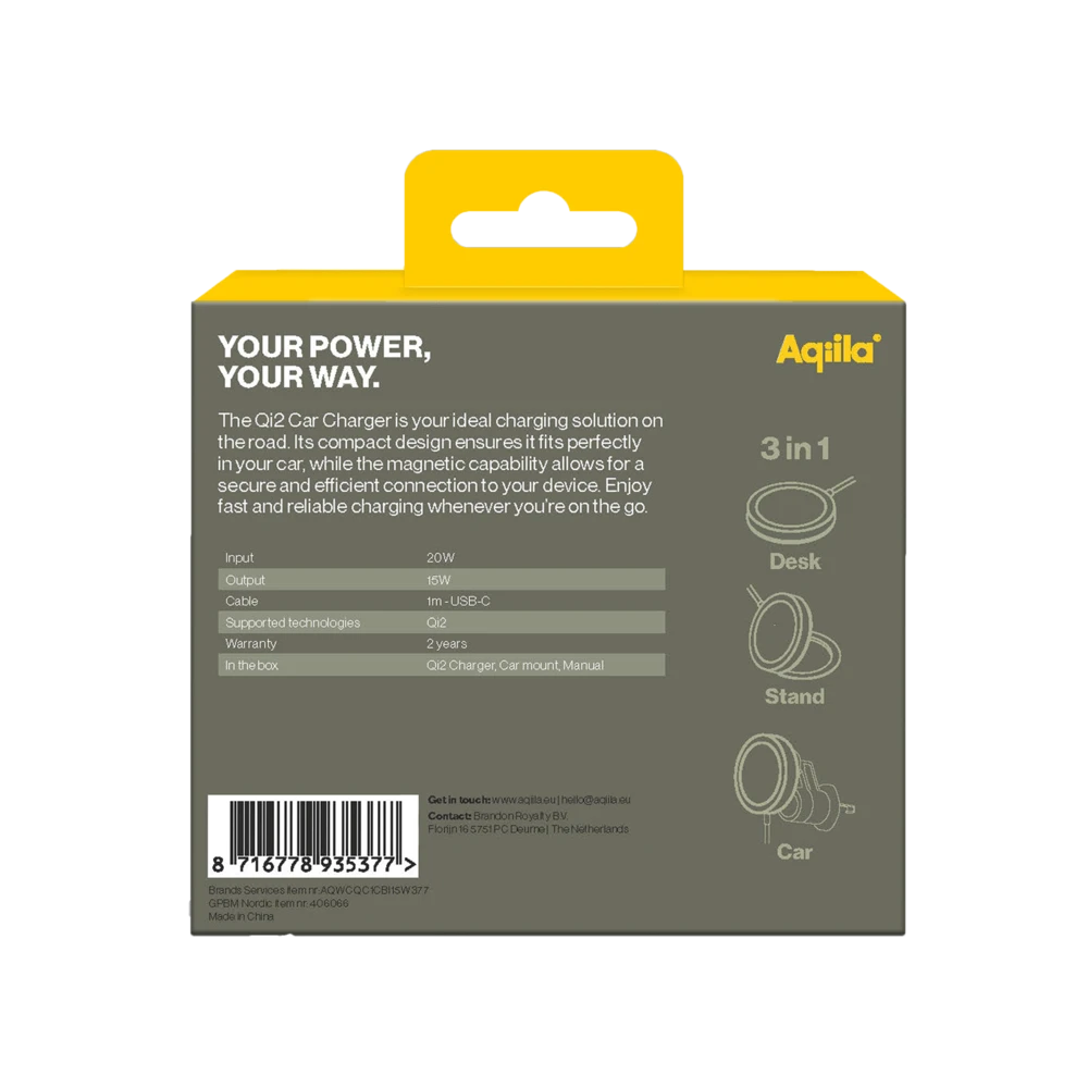 Aqiila Chargebird QC1 Qi2 Trådløs Lader med Bilfeste – 15W, MagSafe-kompatibel