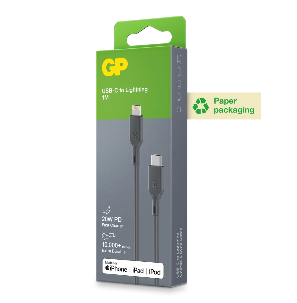 Miljøvennlig emballasje Emballasjen til GP Charge & Sync-kabel er laget utelukkende av papir, og det gir mindre belastning på miljøet.