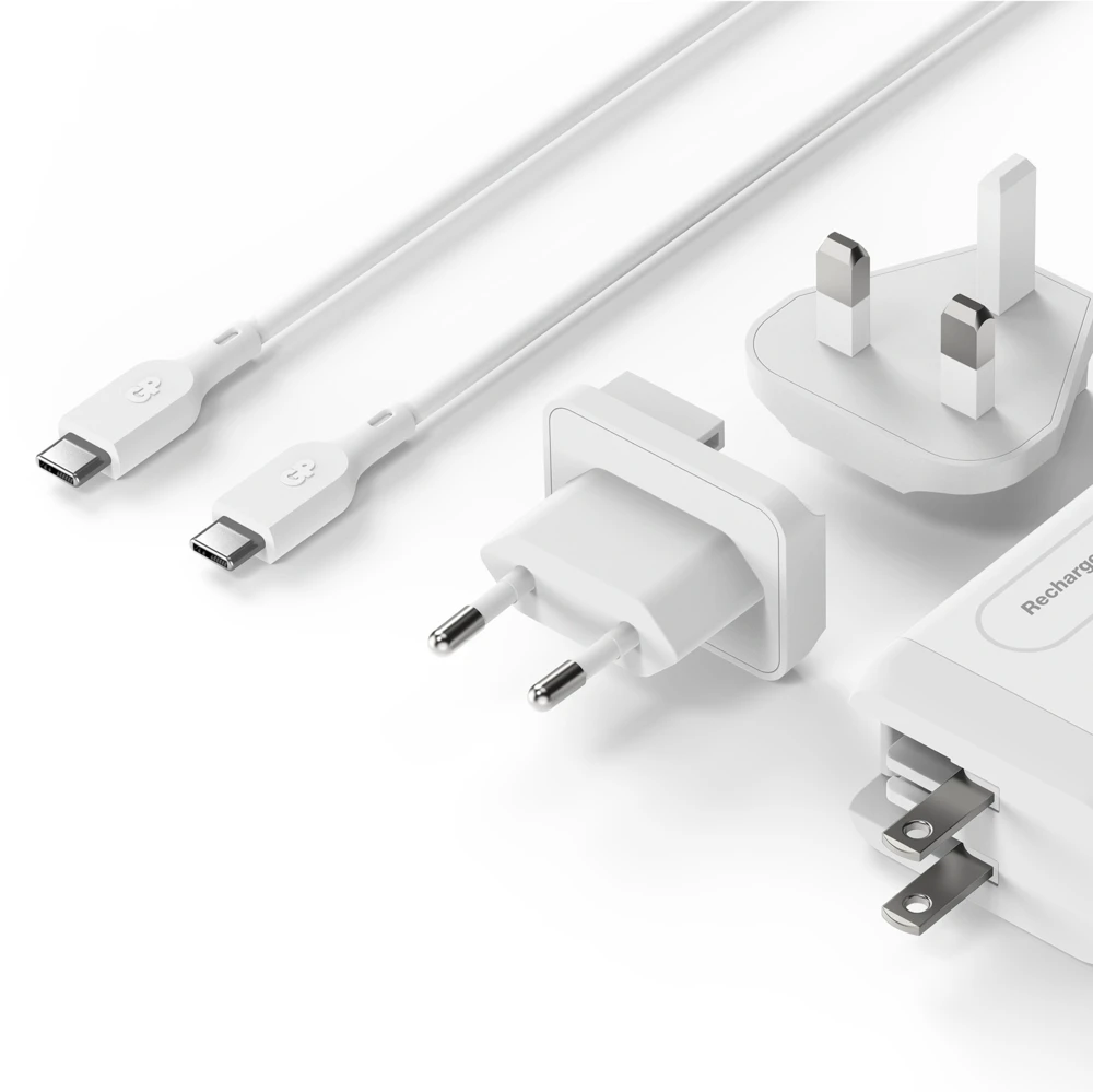 - Inkludert i pakken: 2x reiseplugg (EU & UK), USB-C til USB-C-kabel 2 m.