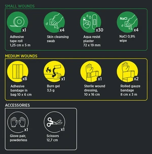 - Vesken er inspirert av DSBs anbefalinger for førstehjelpsutstyr i hjemmet.