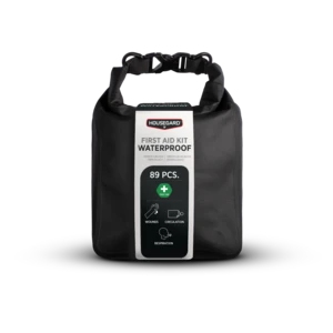 Housegard Waterproof er en vanntett førstehjelpsveske som gjør at du kan være forberedt på ulykker selv under tøffe utendørsforhold. Vesken inneholder alt du trenger for å håndtere små og middels store sår og skader, og den holdbare designen gjør at den tåler å være ute i regn eller fuktige miljøer.